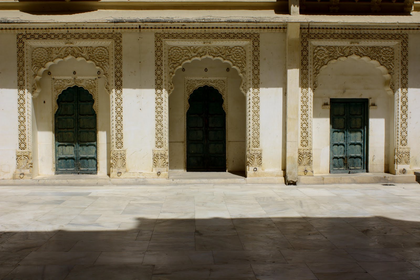A little part of me wishes I was an architect. But I'd have two massive crutches - computers to do all the sums, and a bias for symmetry. Which is why this picture grates a little. Three doors, not the same, not happy maharajah. I bet it pissed him off too.... flog the architect.